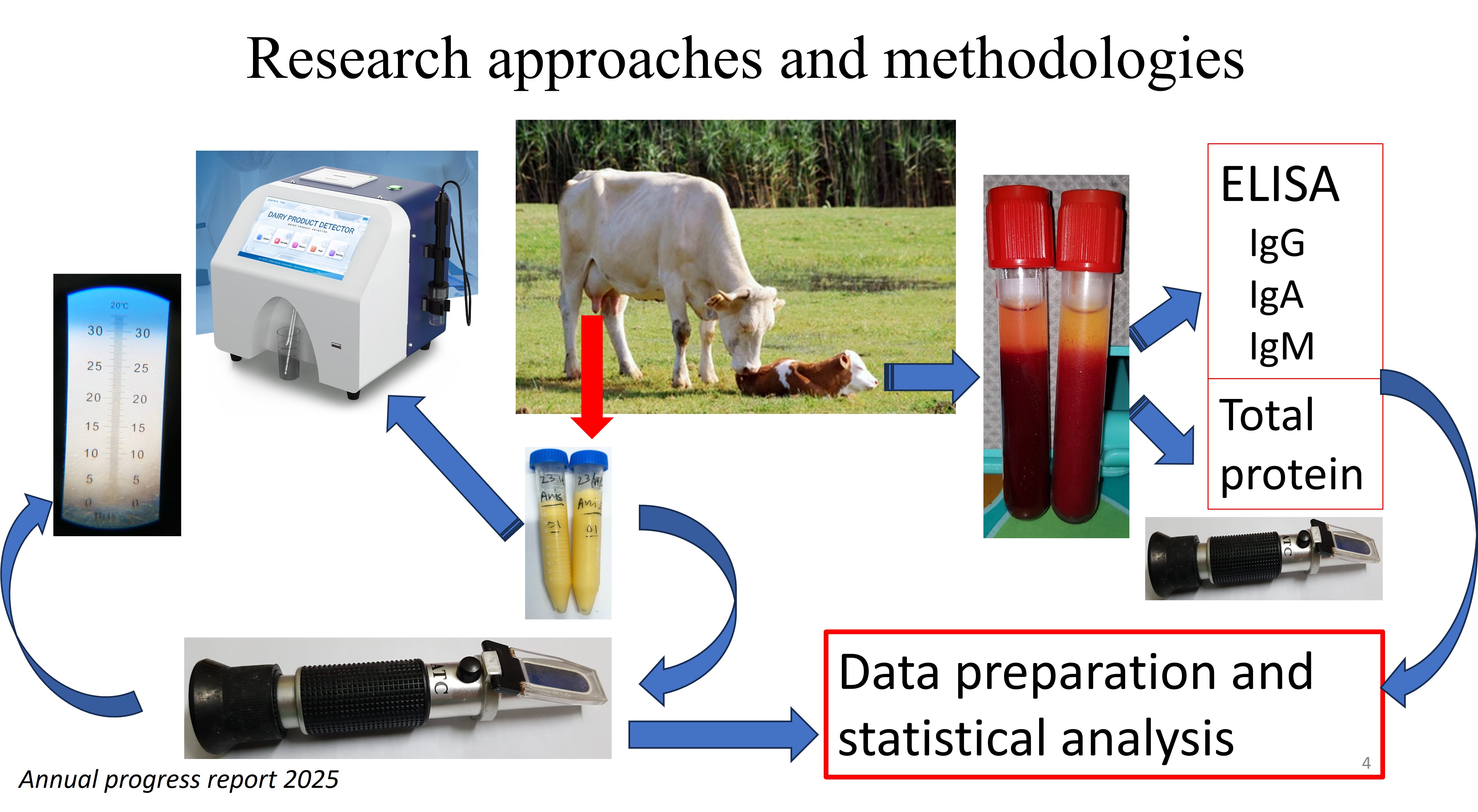 a) To analyze the colostrum profile of dairy cattle i. Colostrum IgG and total protein will be measured by Brix refractometer. ii. Total fat, protein, lactose, Non-fat solid in colostrum will be measured by milk analyzer c) To analyze the passive immunity transfer profile of calf after colostrum feeding i. After colostrum feeding the serum IgG, IgA and IgM will be measured by indirect ELISA. The serum will be collected at day 2, day 4 and day 6 of post calving. ii. Collected data will be analyzed by SPSS.