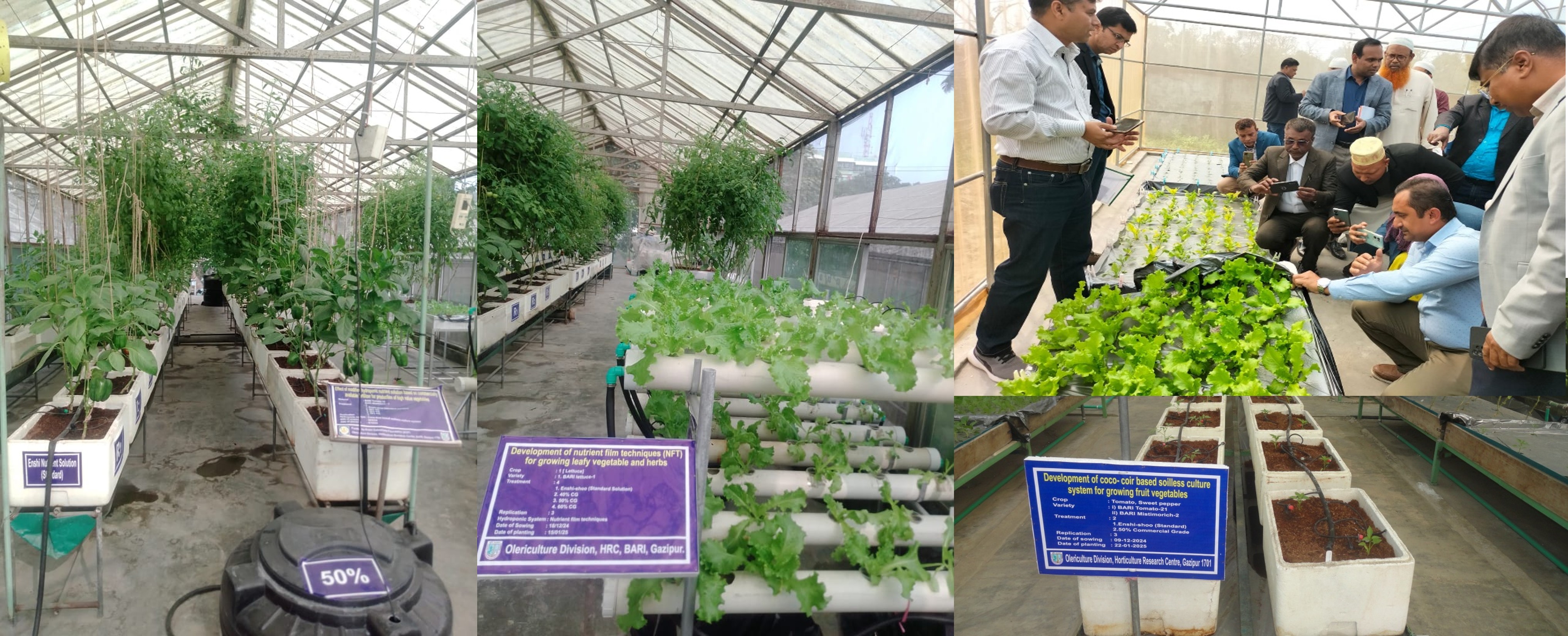 Horticulture Research Centre (HRC), Bangladesh Agricultural Research Institute (BARI) has established and developed hydroponic cultivation techniques for several vegetables including tomato, capsicum, cucumber, lettuce, melon and other high value vegetables. On the other hand simplified hydroponic systems has also been developed using locally available materials for growing high value vegetables in solution and coco-coir based soilless culture in round the year. Now it is very important to validate this technology to the progressive farmers/entrepreneurs.