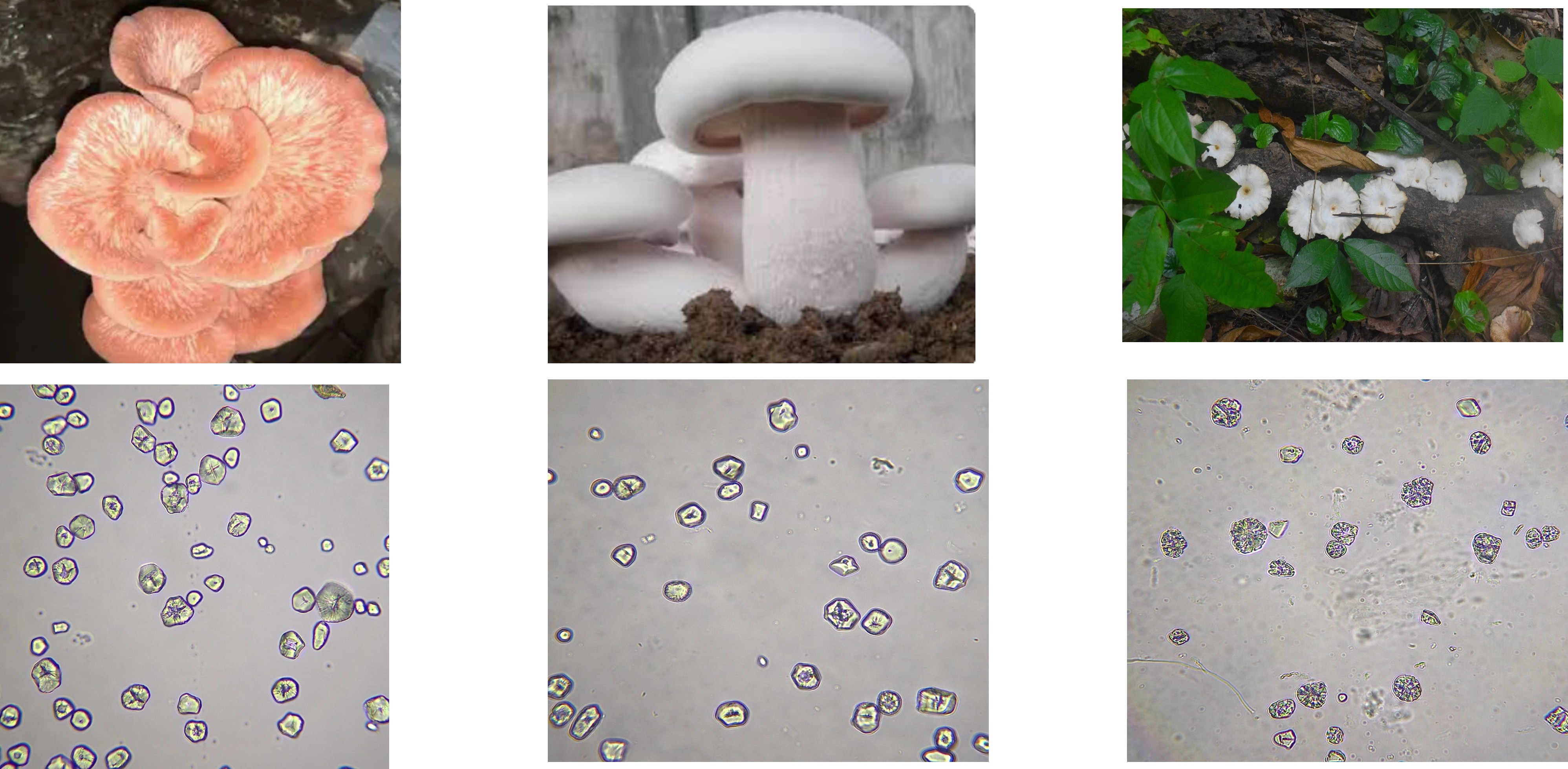 Wild mushrooms collection. The single spore isolation method. Variety development of mushroom through protoplast fusion.